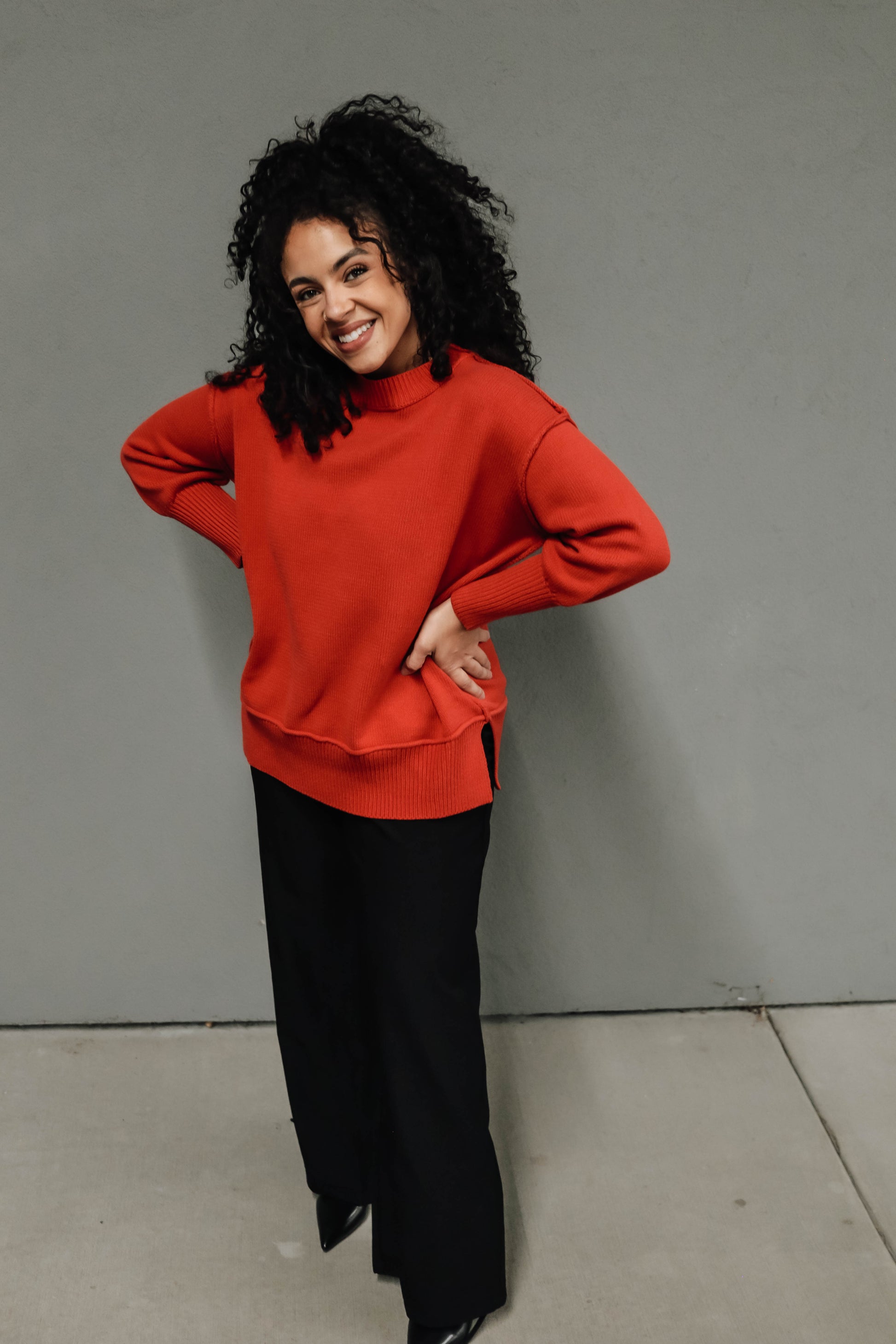 The Ina sweater effortlessly blends charm and versatility. This wardrobe essential is designed as a adorable pullover, that is comfy, oversized with exposed seams, side slits and transition effortlessly. Your favorite new go-to piece has arrived.