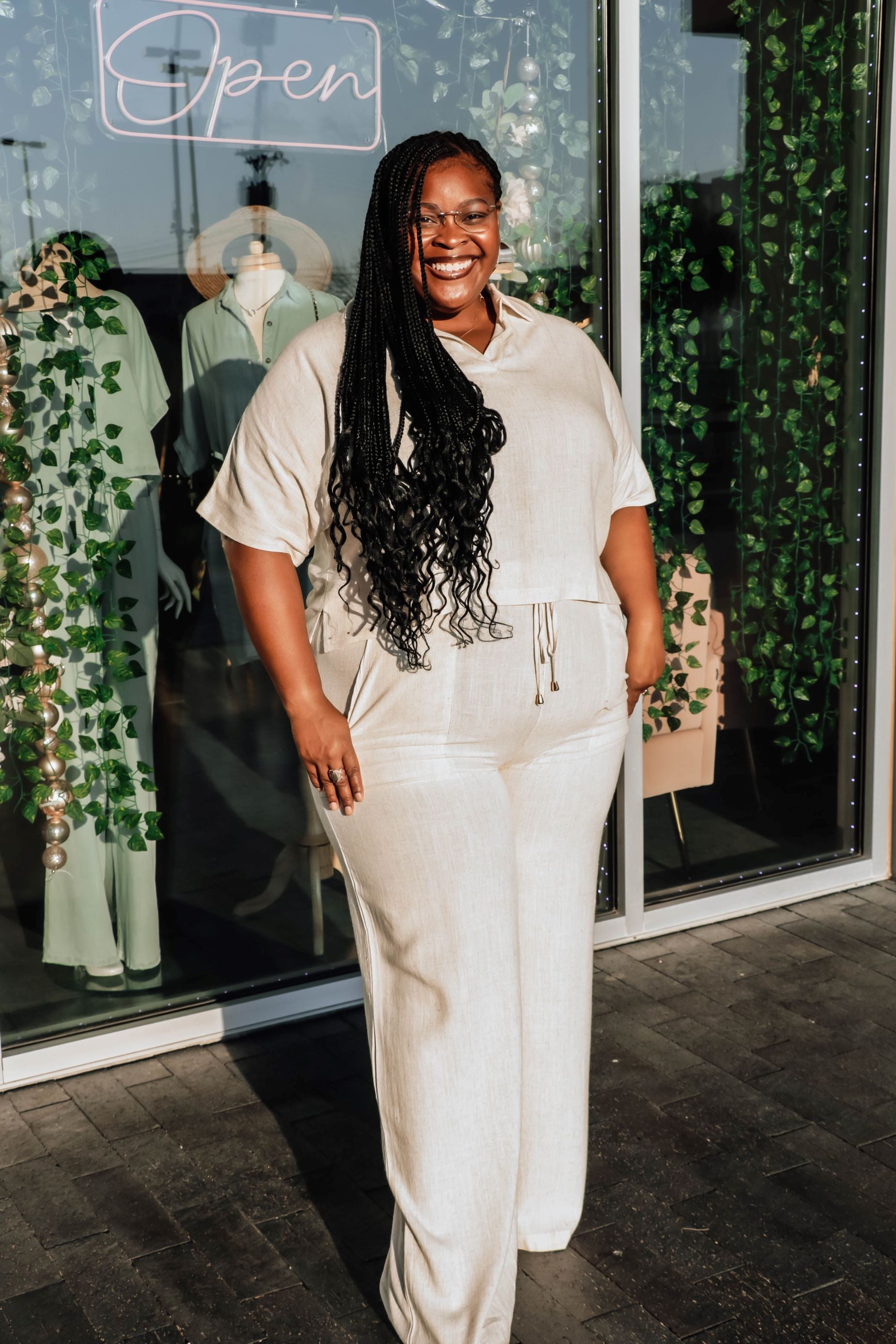 Our Alexis bottoms are where style and comfort meet. These beauties are a soft linen, smock waist, has pockets and a wide leg. They can be worn as a set or separately for a versatile and chic look. So get ready to experience the ultimate comfort and chic style with these pants - the perfect addition to your wardrobe!