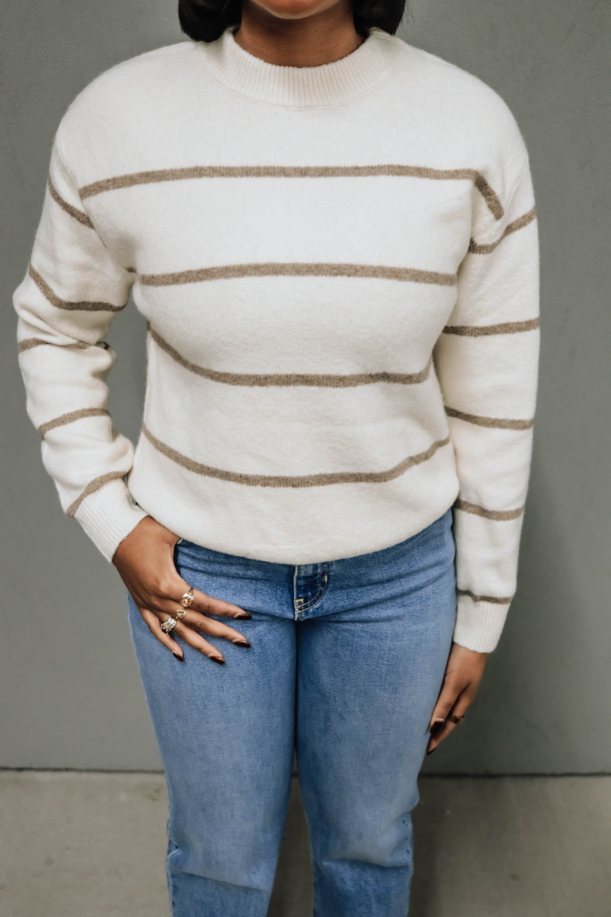 Elevate your everyday wardrobe with the Align Me Sweater, a timeless crewneck essential featuring a striking stripe pattern. This comfy versatile piece offers a classic fit that works effortlessly with any outfit, from casual weekends to relaxed office days. It is lightweight and comfortable, perfect for layering or wearing solo.
