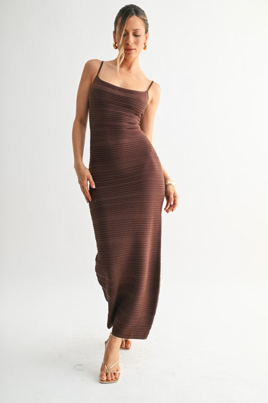 Turn heads in our Ava Sculpted Maxi Dress. This dress is a stunning figure-hugging maxi dress, made from a sculpting textured knit woven with a hint of shimmer. Featuring a soft scoop neckline, adjustable slim straps, and a full-length hem, it blends elegance with a effortless slay. The ribbed finish highlights your curves and catches the light beautifully with every move. Snag yours now!
