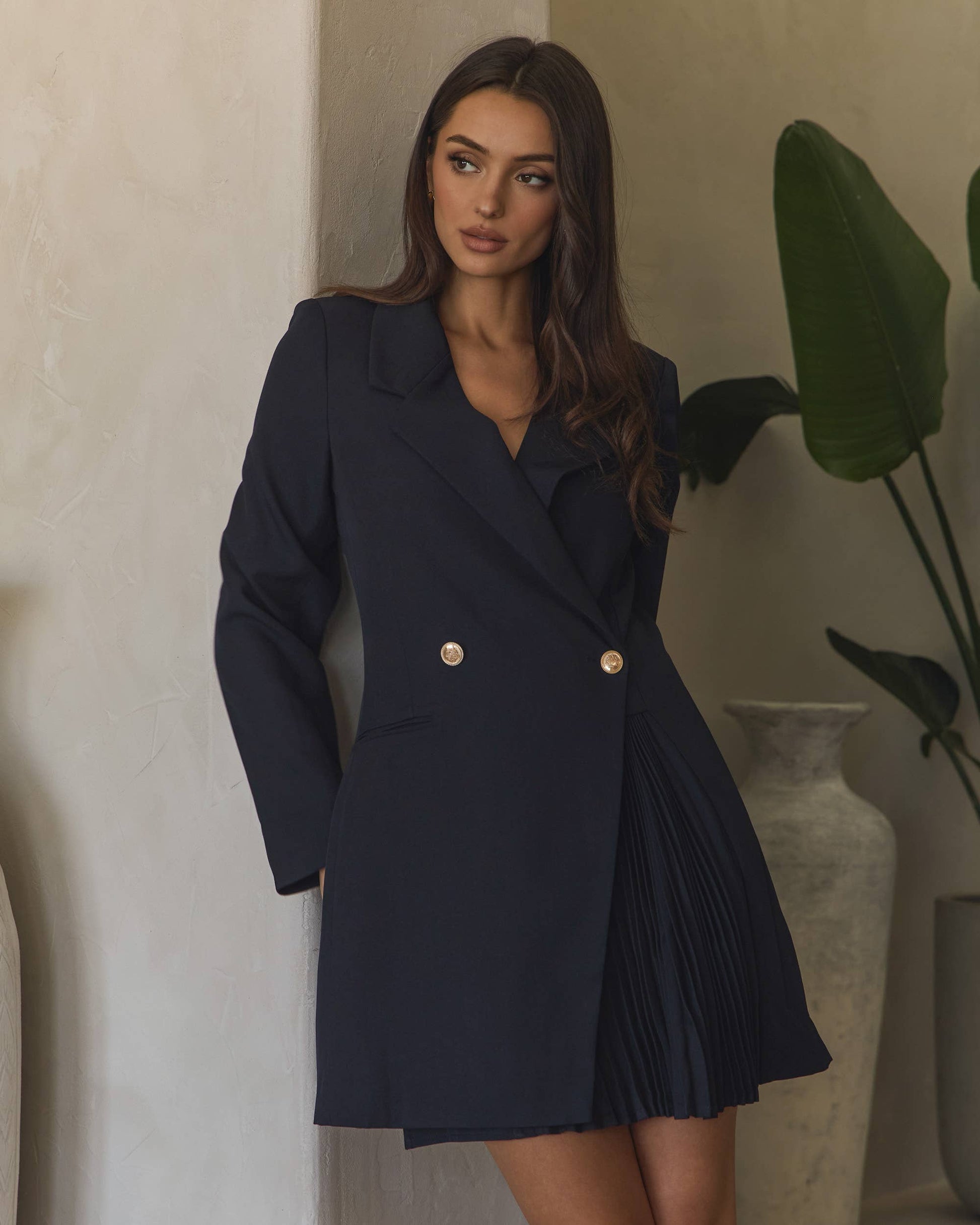 Jackie Blazer Pleated Dress - Dark Navy