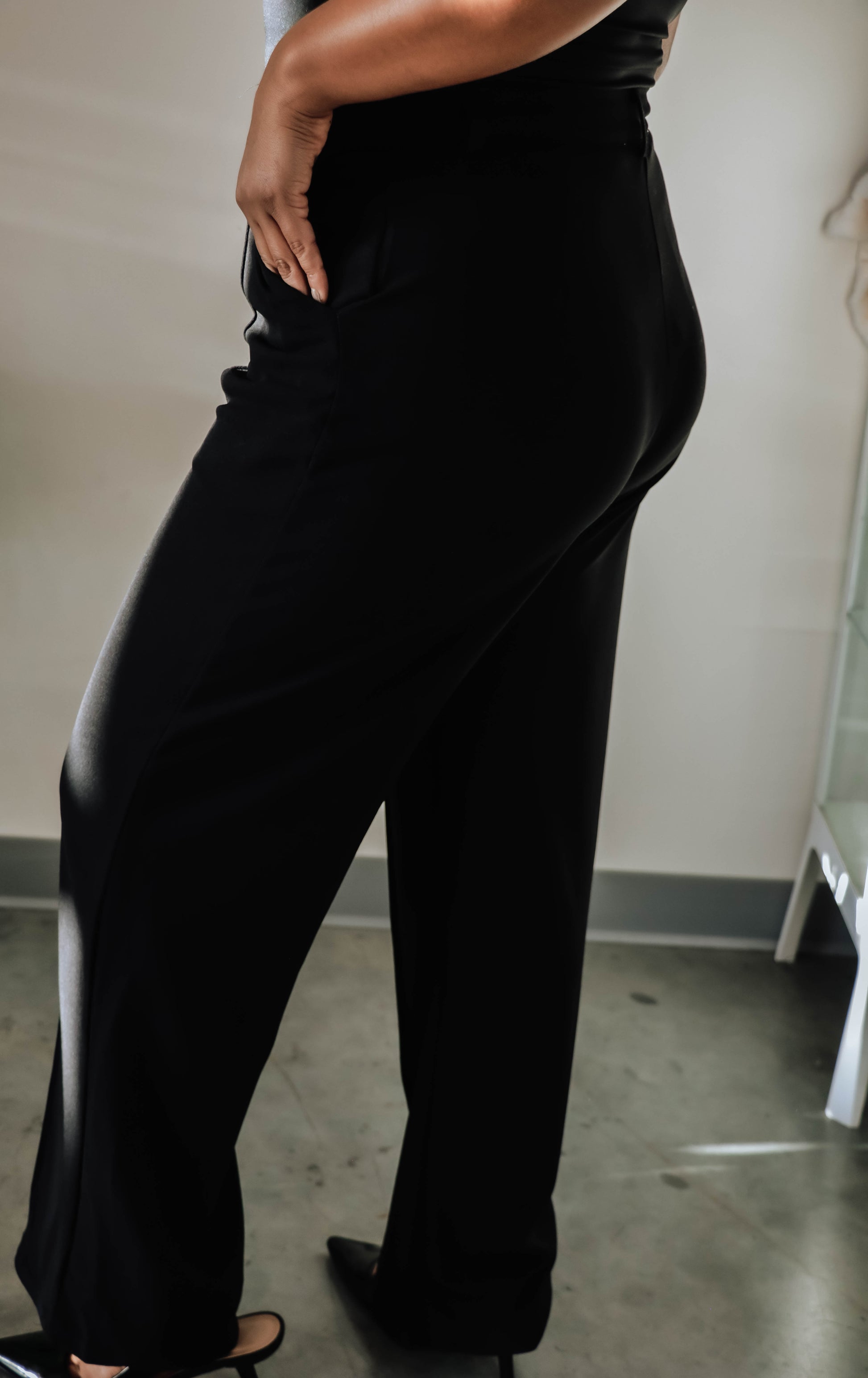 Introducing our Chole Essential Pants in black, your new go-to for effortless style and comfort! These pocketed wide leg pants feature a front zipper and belt loops for functionality, while also being so chic! These beauties can go from day to night, offering versatility. Elevate your wardrobe with must-have essential piece!