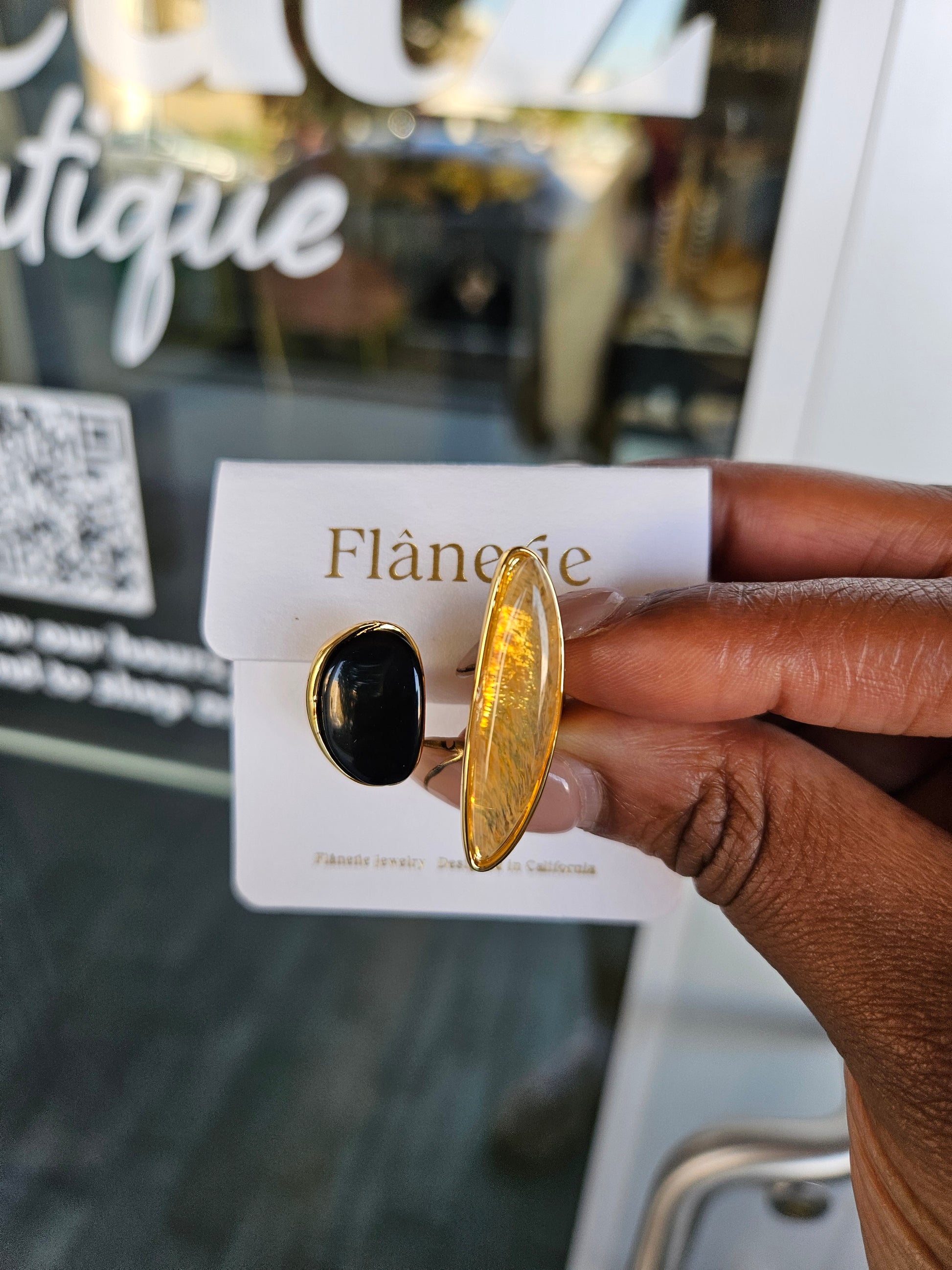 Elevate your style with this vintage-inspired ring featuring a striking black agate stone, beautifully complemented by 18K gold plating for a luxurious finish.