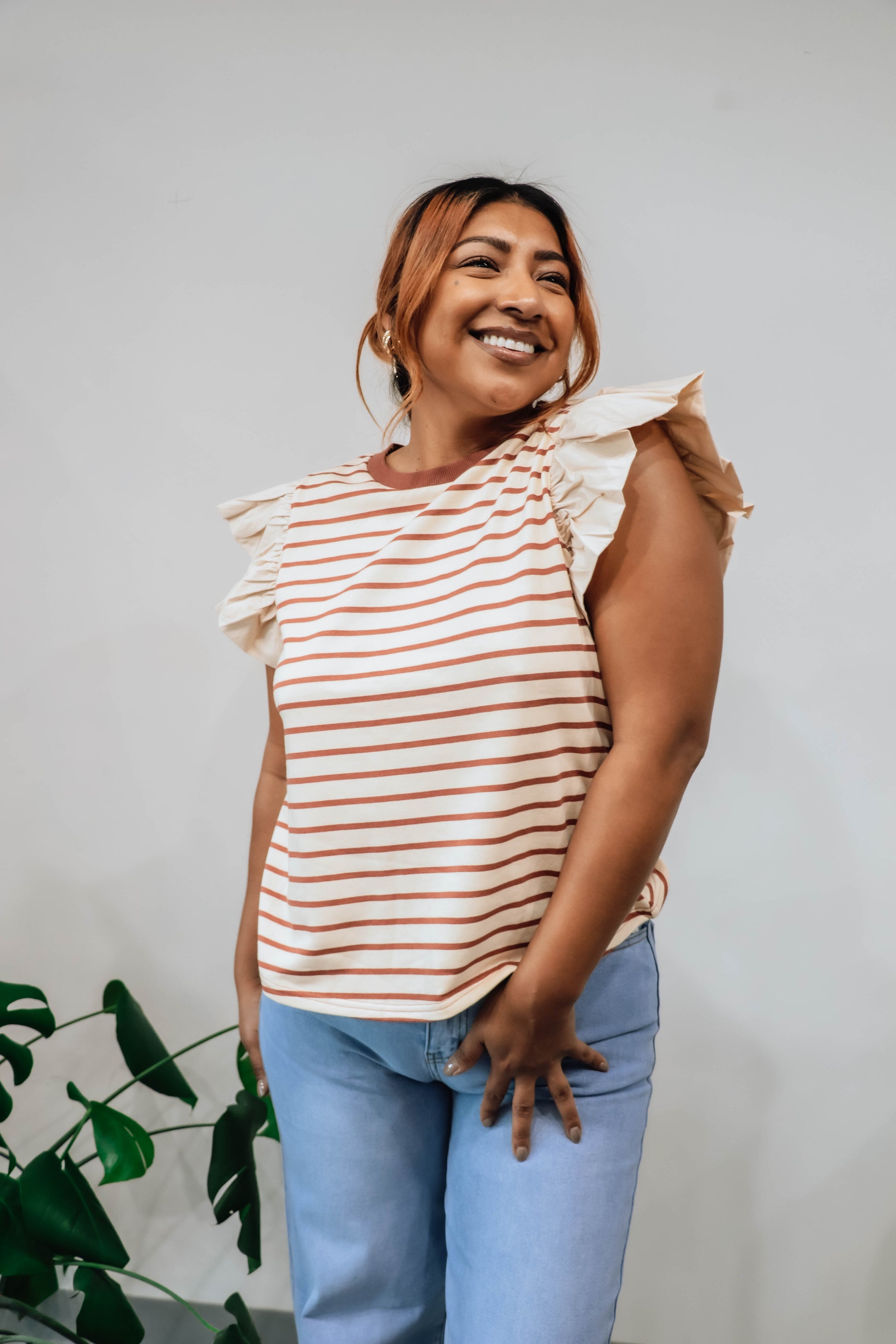 Add a touch of whimsy to your wardrobe with our Flutter Me Striped Blouse! This adorable piece features a chic stripe pattern perfect for the season and the playful ruffle sleeves bring a fun, flirty vibe. Perfect for dressing up or down, it pairs effortlessly with slacks, jeans even your favorite skirts.