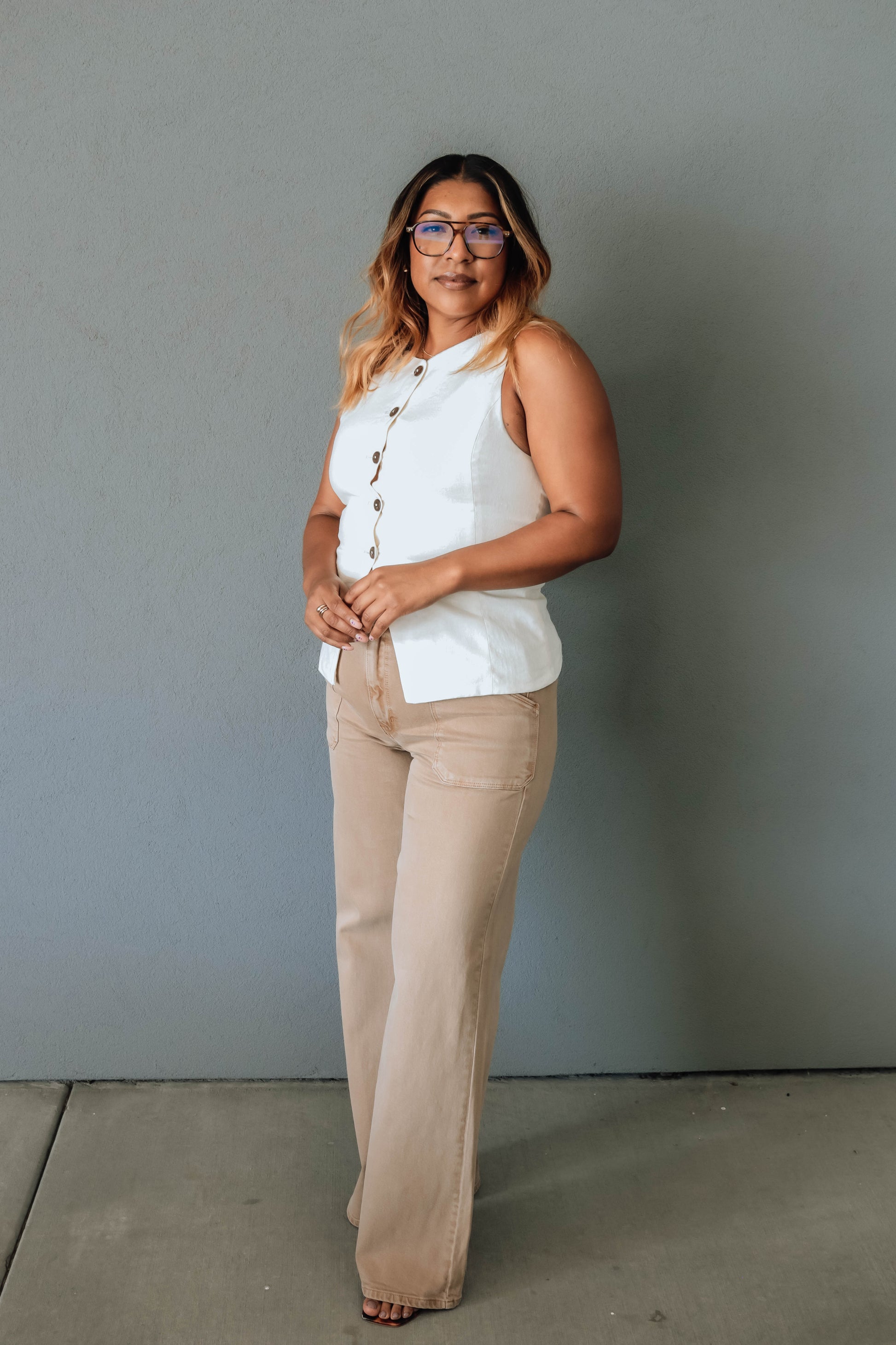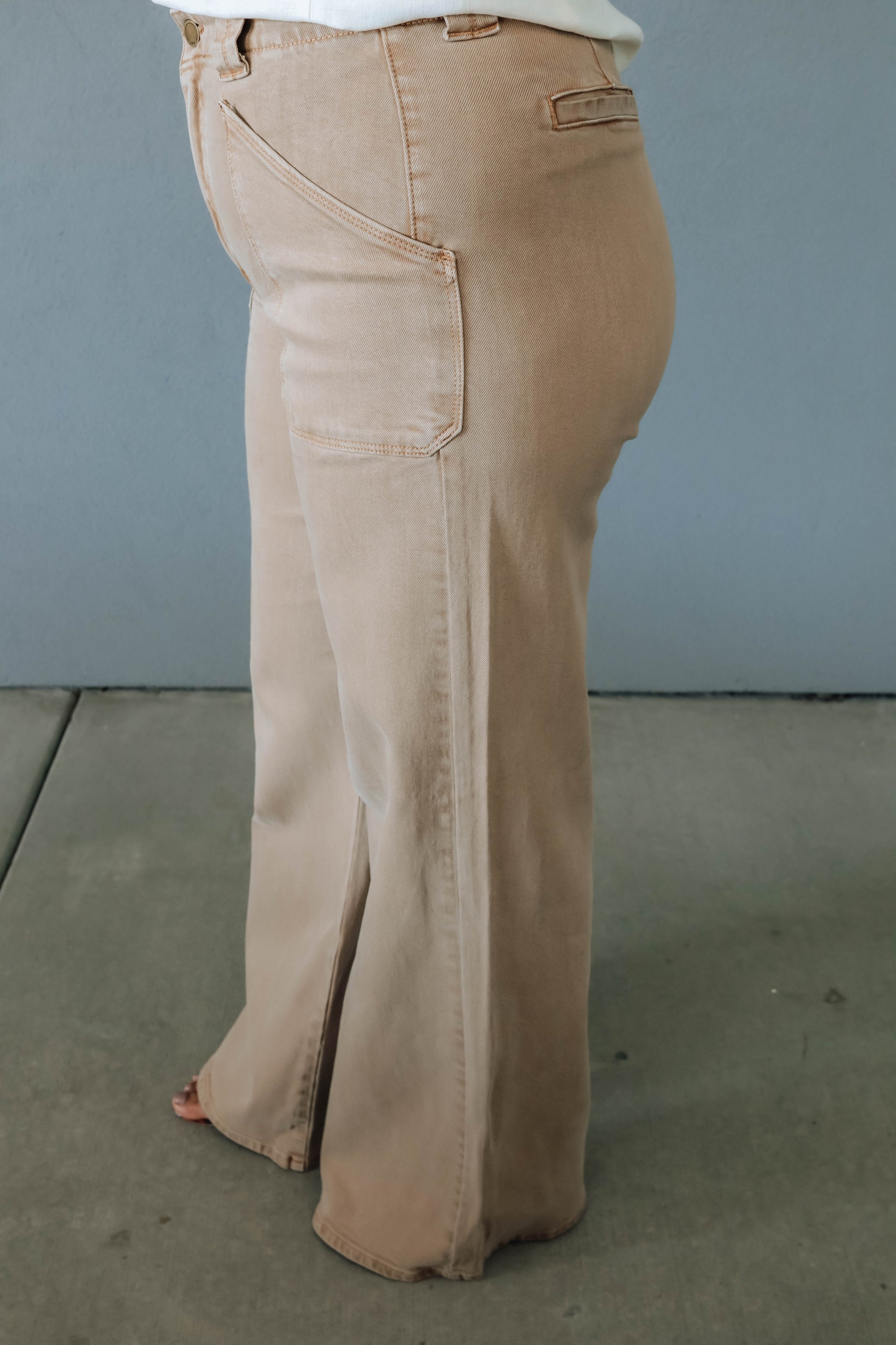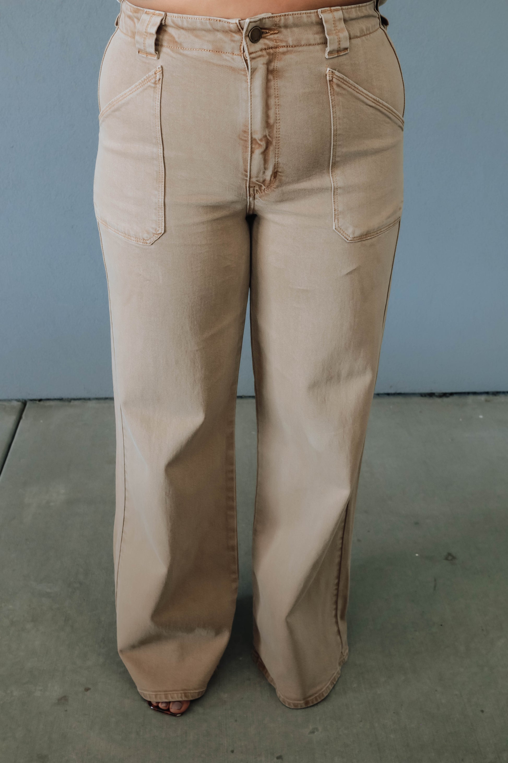 A vintage classic with a modern edge — Harbor Wide-Leg features front patch pockets and a flattering high-rise fit designed to elongate your silhouette. The soft khaki tone makes it a wardrobe staple, while the wide-leg cut adds effortless style and comfort for everyday wear. Dress them up or keep it casual — these jeans do it all.