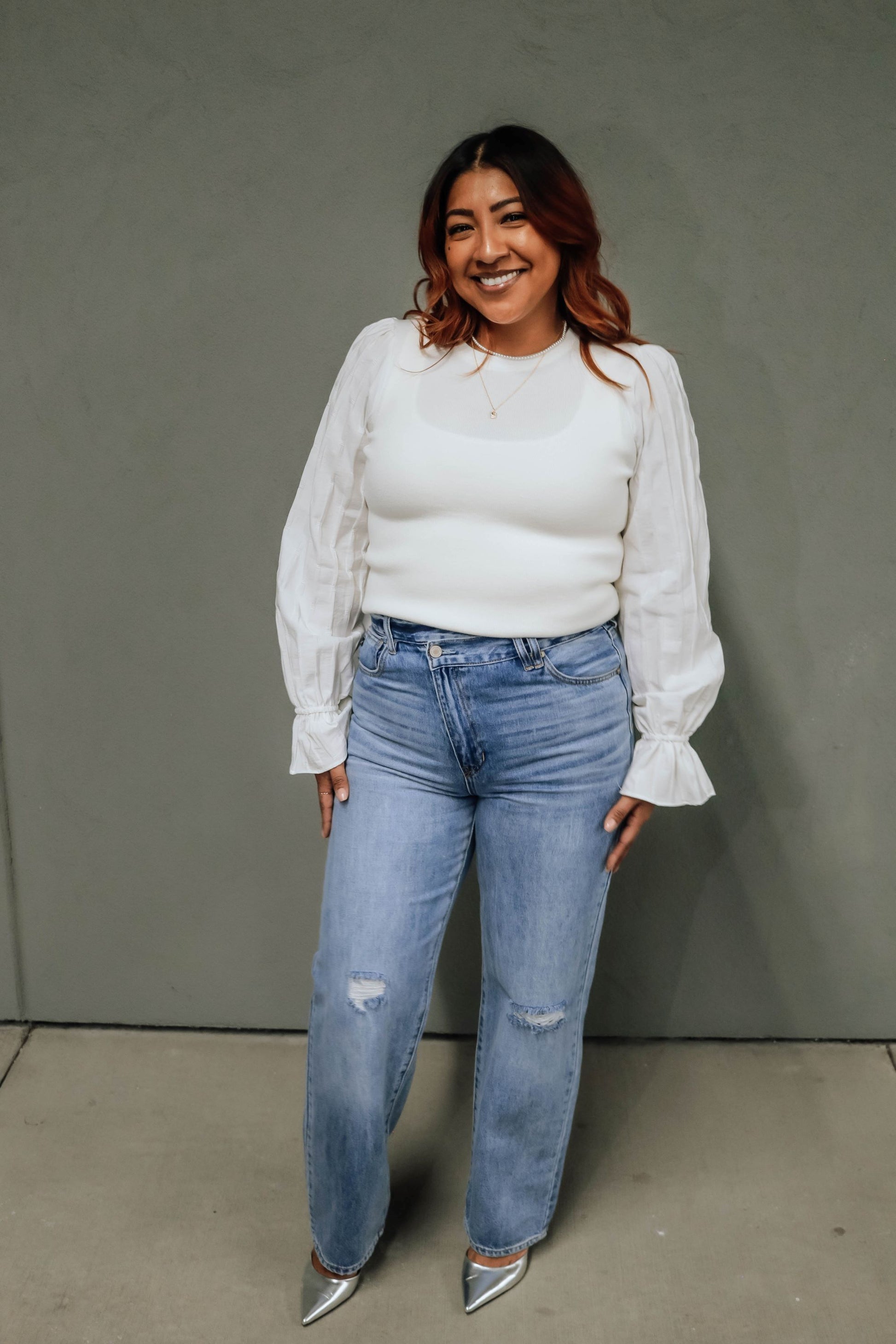 Styled with our Avery Criss Cross Jeans