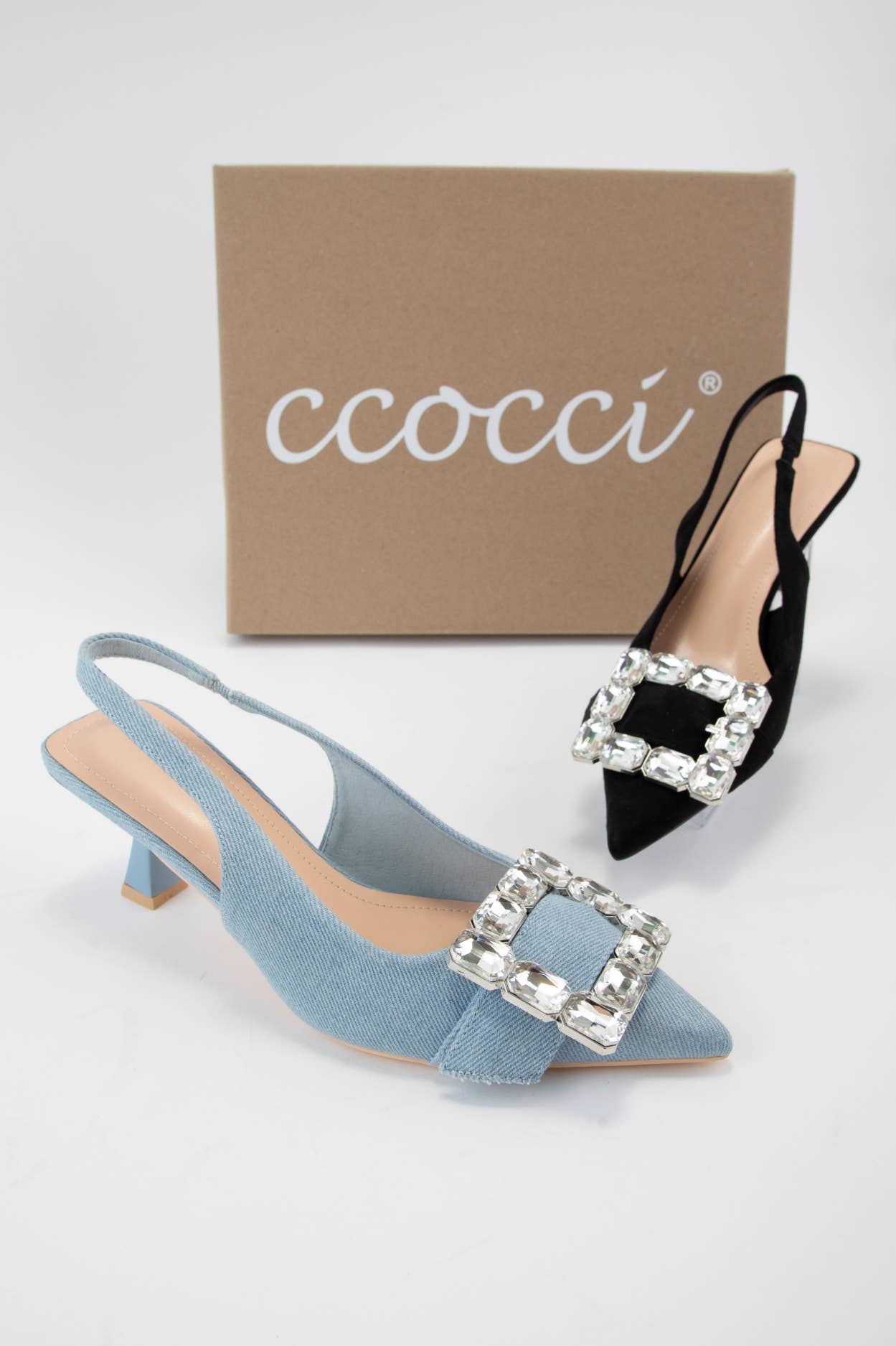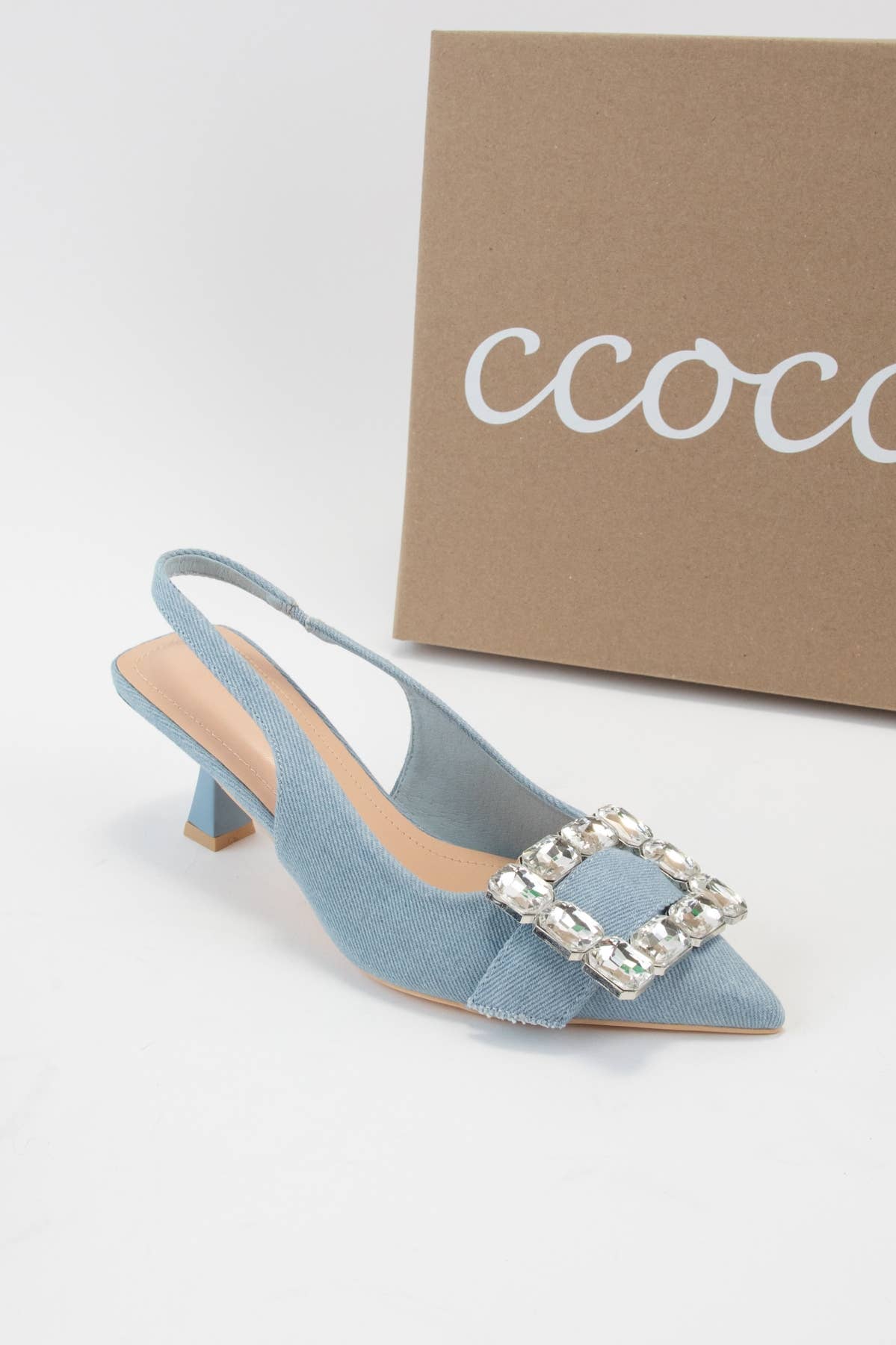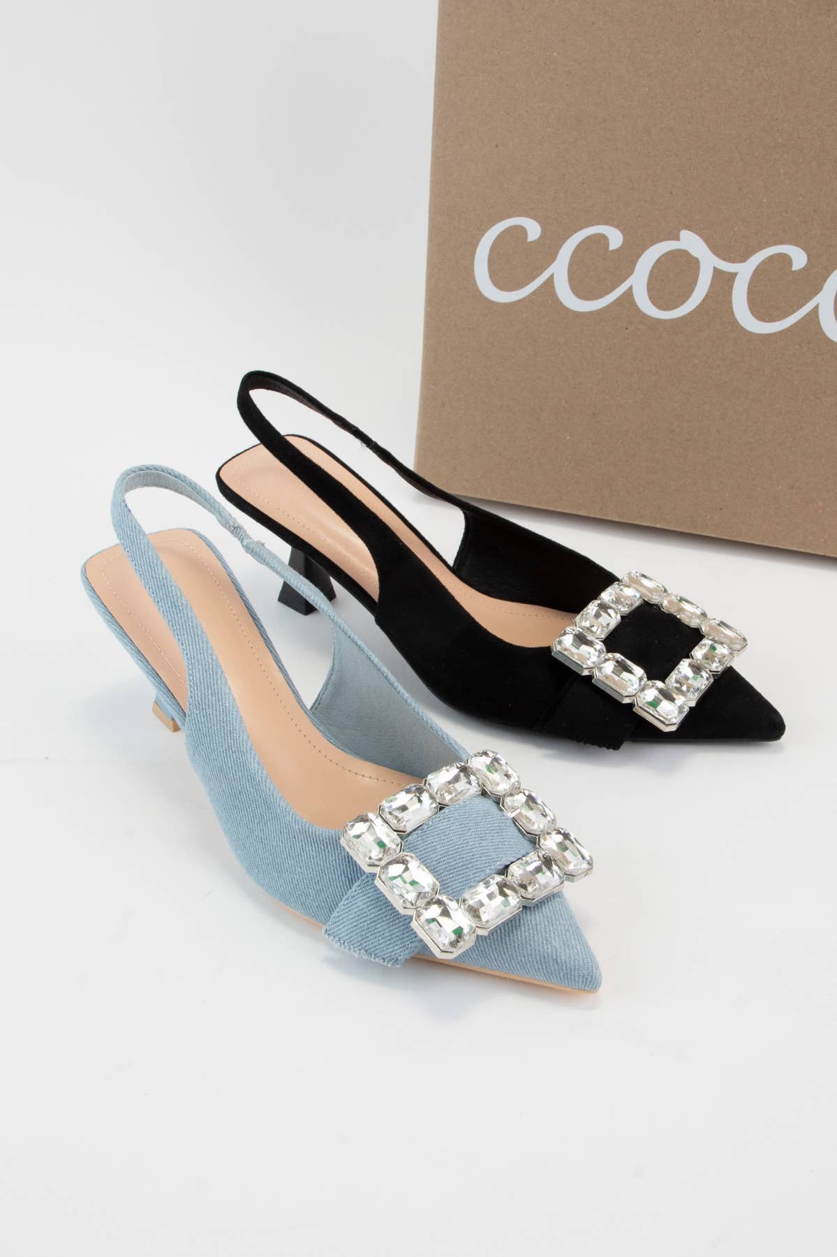 Get ready to sparkle with these playful kitten heels featuring a giant rhinestone buckle strap! The slingback style with a pointed toe and front elastic strap makes slipping them on a breeze. With a comfy 2.7-inch heel, they’re perfect for adding a little fun and flair to your step.