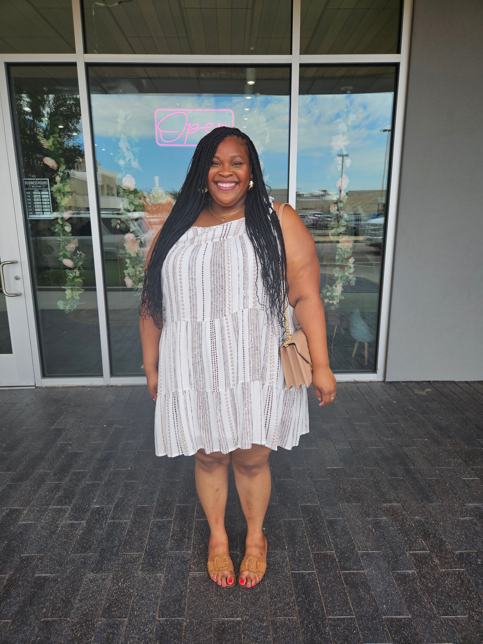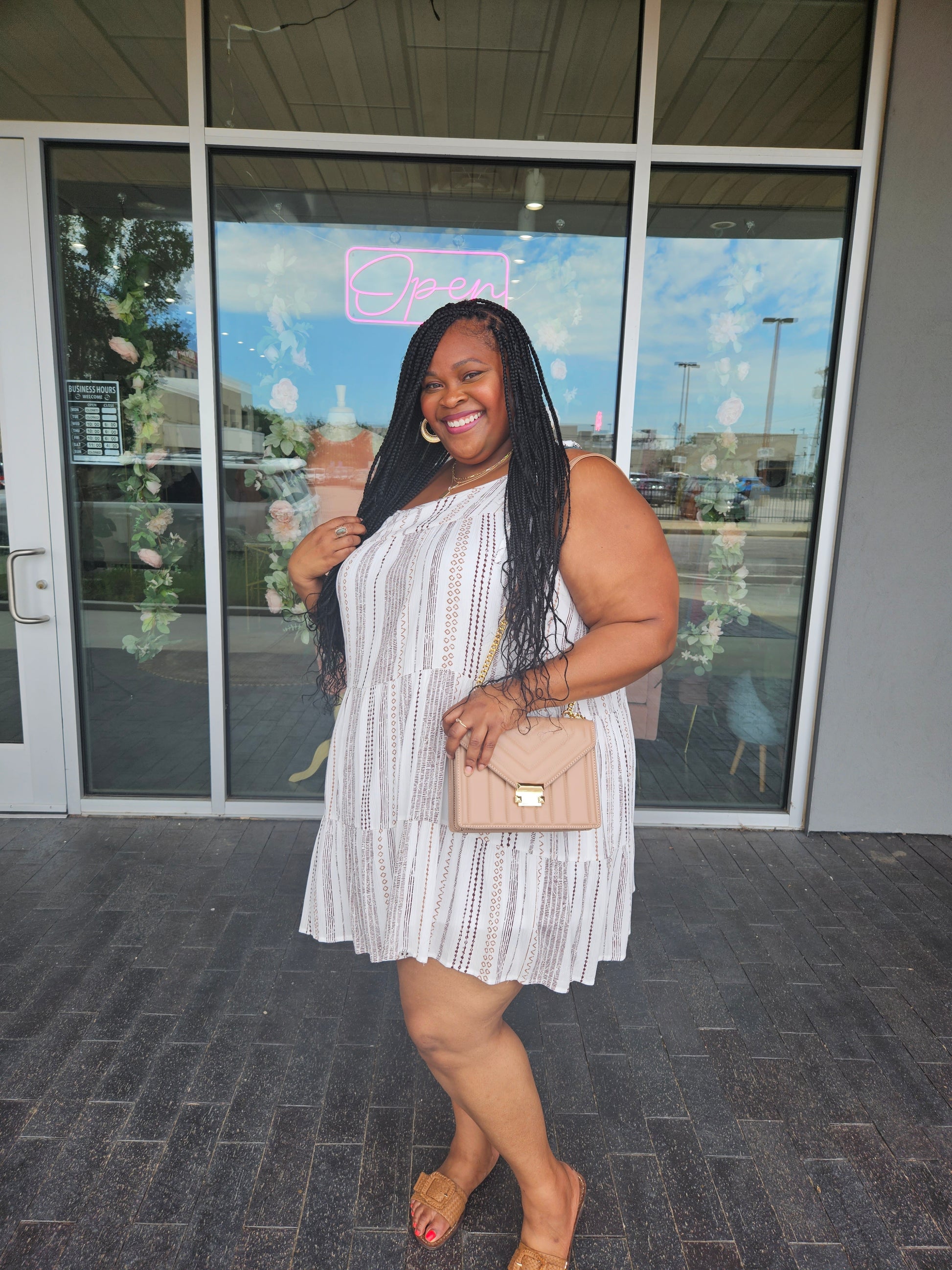 Stay trendy with our Geo Dress! This cute and comfy dress features modern geo shape patterns, shoulder tie detail, and it's flowy, which is the best ingredients for the perfect dress. Grab your sandals and a cute handbag and you're ready to go!