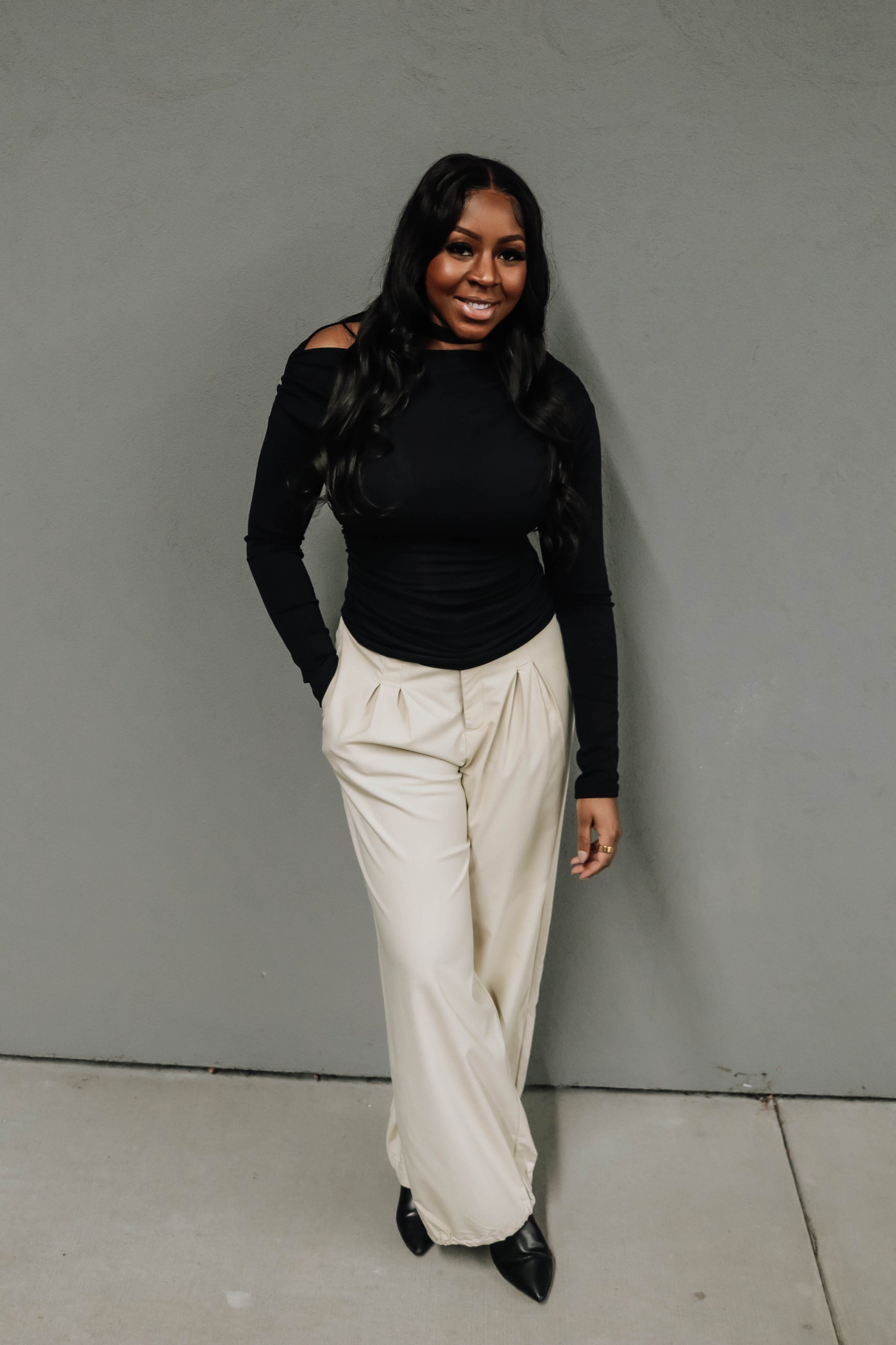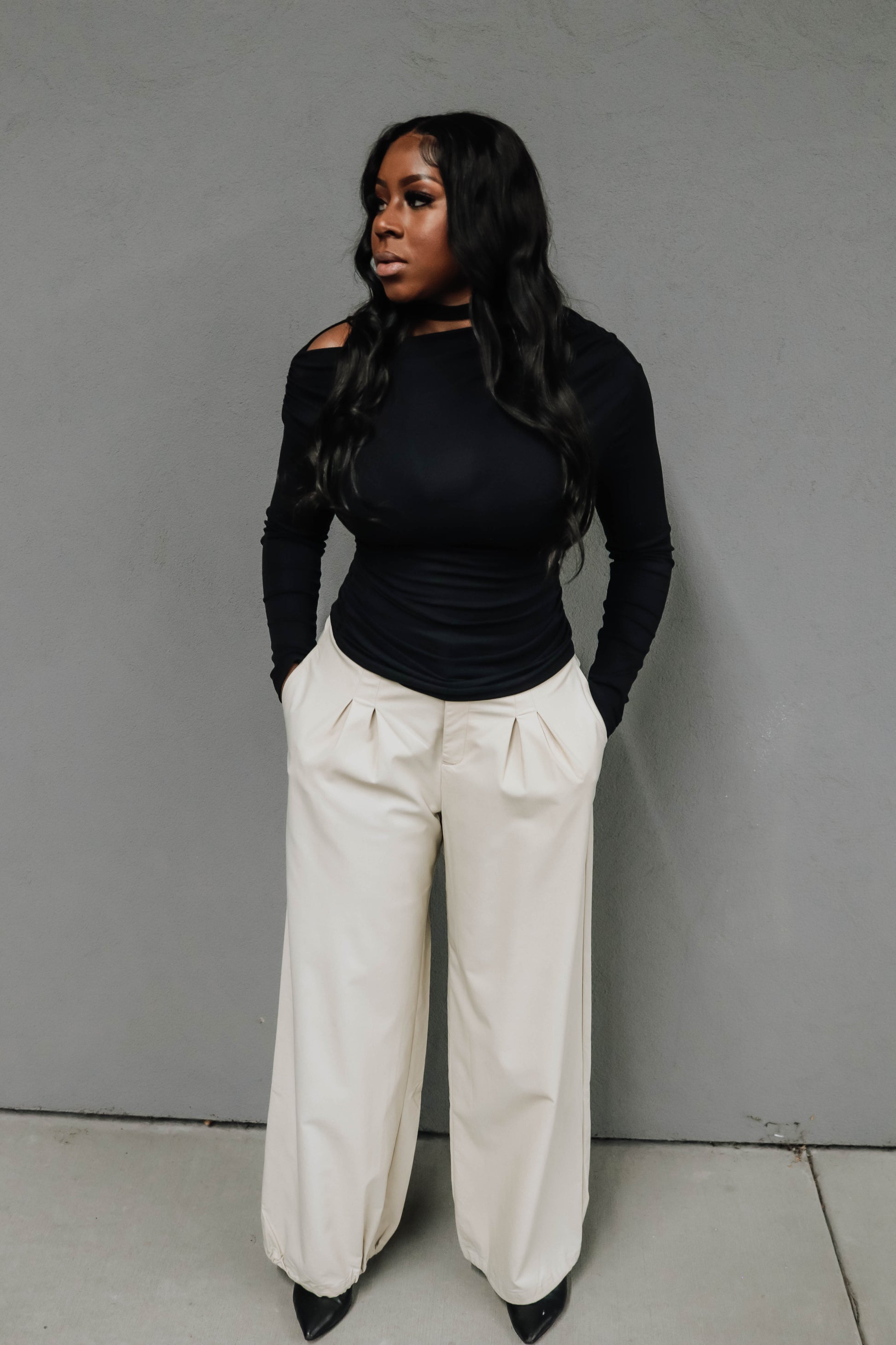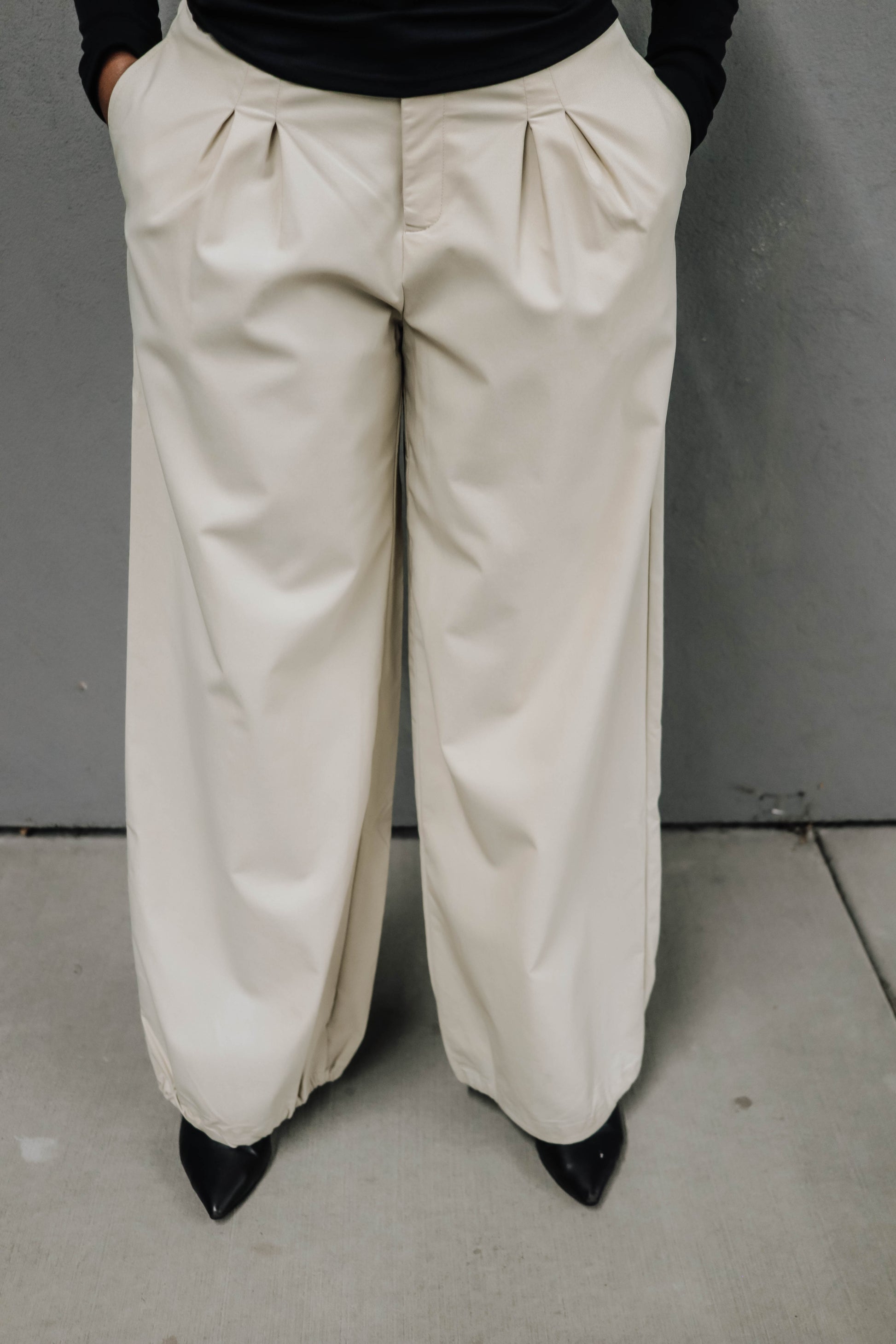 Timeless, chic, and crazy comfortable. These beauties stretch with you. Designed with elegant pin-tucks, functional pockets, an elastic back waistband and an adjustable drawstring hem so you can cinch the bottom for the perfect look + fit. Dress them up for work or down for weekend plans , either way, they’re a closet fave waiting to happen.
