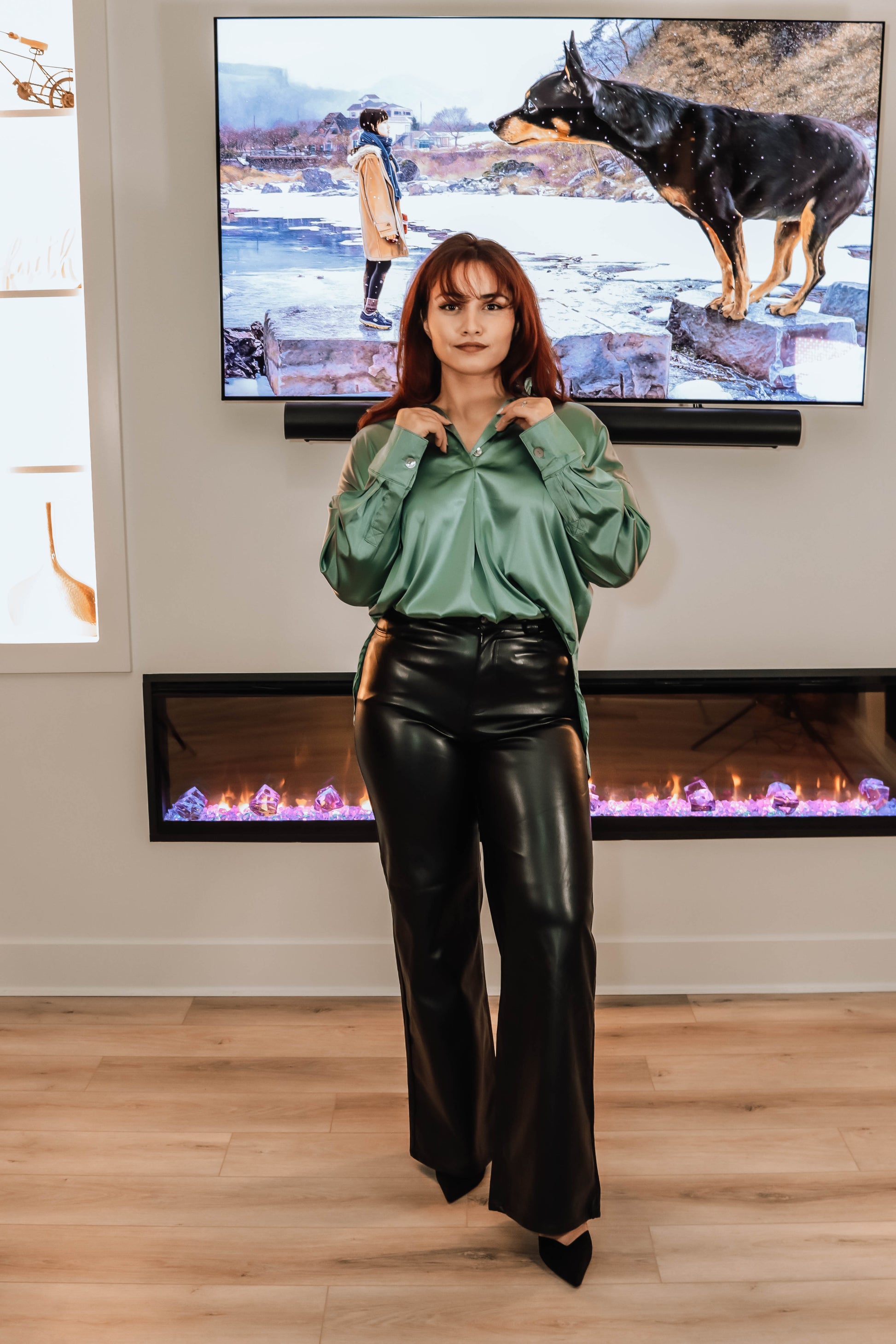 Paired with our Licia Vegan Leather Wide Leg Pants - Black