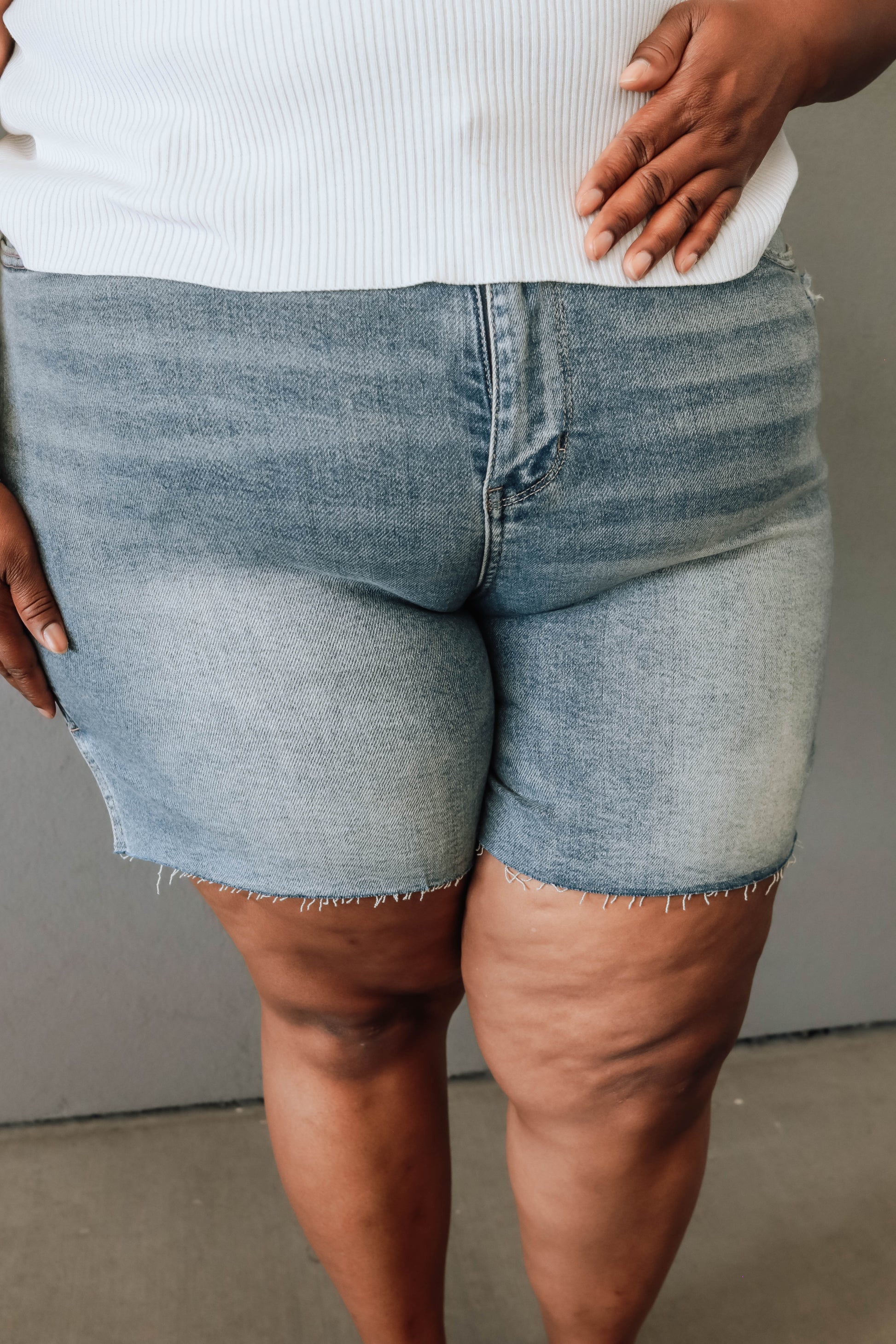 The Dakota Shorts by Judy Blue feature a vintage wash, flattering high-rise fit, and subtle side slits for added comfort and style. With a 7” inseam and amazing soft stretch, they’re made to move with you. Pair with a graphic tee and sneakers for laid-back vibes, or dress them up with a blouse and sandals for easy summer style.