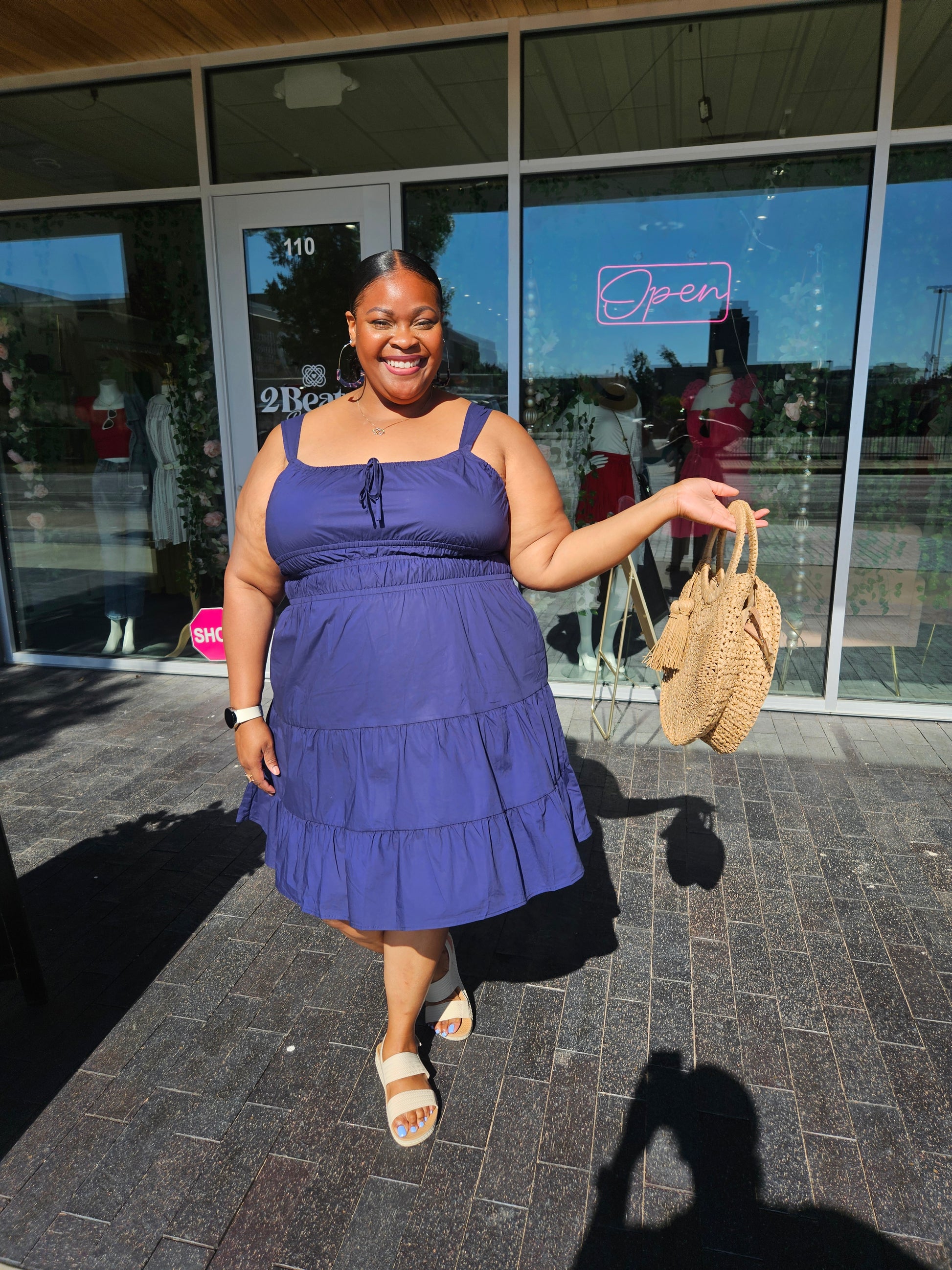 Make a statement with our Tidal Wave Navy Midi Dress, designed specifically for our curvy ladies! This stunning dress features an elasticized waist that cinches in at the perfect spot, creating the best fit and flare look. You need this beauty, it's easy to wear and you can style up or down.